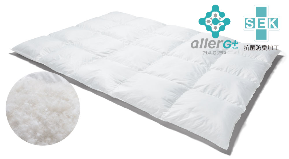 ハウスダストの臭いを防ぎ、消臭機能のある加工技術を採用しています。睡眠に最適な温度と湿度が保たれるよう設計された羽毛ふとんです。