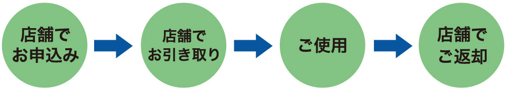 ※ 完全予約制返却日が定休日又は臨時休業日の場合は翌営業日に返却ください(追加料金なし)